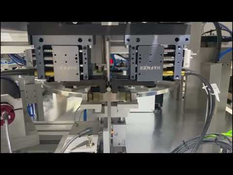 Workpieces are supplied as bulk material, inspected, rejects are separated, and good parts are collected as bulk material in containers.