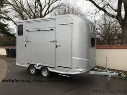 HU/AU new, 2-horse side ramp, stallion partition, roof hatch, window in horse compartment, folding bed, 2 folding steps, front window, aluminium floor, rubber mat flooring, partition wall, saddle compartment, tandem axle, permissible total weight 2,700 kg. Metallic colour available at a surcharge of €1,000 net. FOR US, THE CONDITION AND OVERALL FEELING ARE DECISIVE – PRICE IS SECONDARY. For further questions, Mr. Faller is at your disposal at the given number. //TRADE-IN, PART-EXCHANGE OR FINANCING OF YOUR VEHICLE IS POSSIBLE!All details provided without liability.* More offers available on our homepage: The description and information provided do not constitute guaranteed features and are not binding. Only the purchase contract signed at the dealership is binding. Subject to error and prior sale!