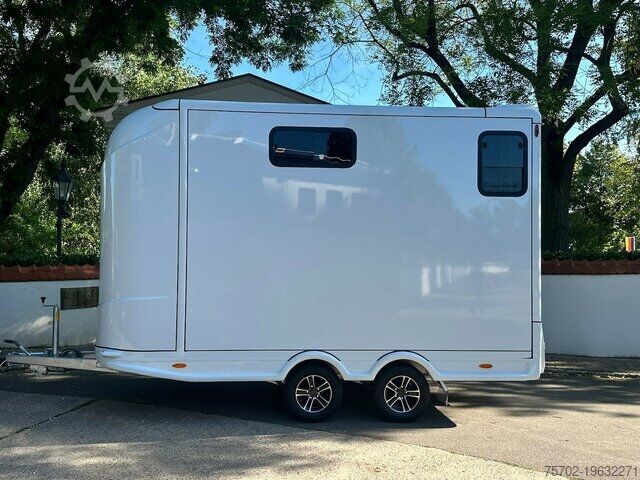 MOT (safety inspection) and emissions test new, 2-horse side ramp, stallion partition, roof hatch, window in the horse compartment, folding bed, 2 folding steps, front window, aluminum floor, rubber flooring, partition wall, tack room, alloy wheels, tandem axle, permissible gross weight 2,700 kg, color “Metallic” available for an extra charge of €1,000 net; mo(r)e wheels available for an extra charge of €390 net. FOR US, CONDITION AND OVERALL IMPRESSION MATTER MOST; PRICE IS SECONDARY. If you have any further questions, Mr. Faller will be happy to assist you at the following number. //*TRADE-IN, PART EXCHANGE, OR COLLATERALIZATION OF YOUR VEHICLE AS WELL AS FINANCING POSSIBLE! All information provided without guarantee* More offers can be found on our homepage. The description and specified data do not constitute an assured property and are not binding. Only the purchase contract concluded at the dealership is binding at the time of sale. Errors and interim sale reserved!